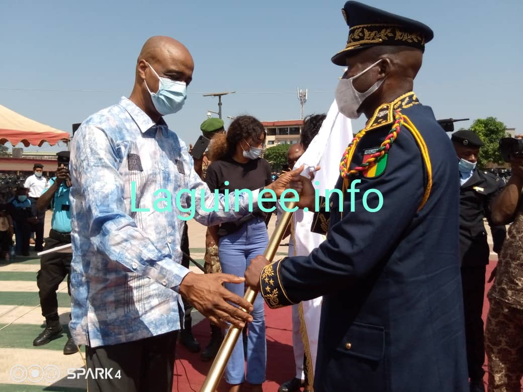 Ce vendredi 05 décembre, le Directeur Général de la Police Nationale a reçu le Fanion d’Honneur du Mérite pour service rendu à la police nationale. Cette distinction est l’œvre du Programme de Renforcement des Capacités pour la paix (PRPC) en collaboration avec le Bureau d’Observateur de Surveillance et de Médiation. La cérémonie s’est tenue dans les locaux du ministère de la sécurité et la protection civile. Outre le président de l’Assemblée Nationale, plusieurs cadres du département de la sécurité ont pris part à l’événement, rapporte un journaliste de la Guinée.info, qui était présent sur place.