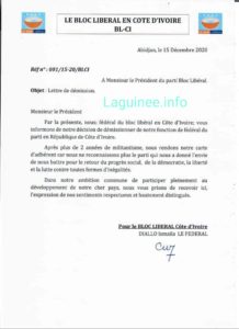 , Laguinee.info vous propose ci-dessous la lettre de démission de la Fédération BL de Côte d’Ivoire.
