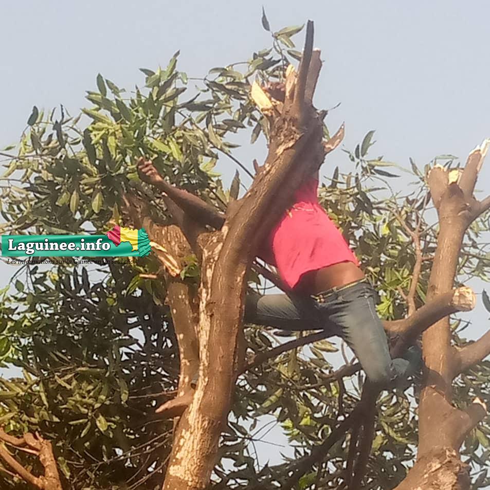 Ce drame a eu lieu aux environs de 17 heures. Selon les informations glanées par le correspondant de Laguinee.info, la victime était accrochée à une branche d’un manguier, qu’il voulait couper.