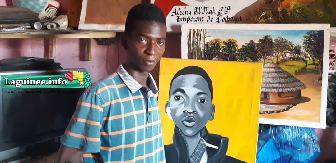 Parmi les artistes qui œuvrent dans cet atelier, tous ne sont pas issus des instituts spécialisés. Nombre d’entre eux possèdent des talents innés, mais ils viennent se perfectionner auprès d’autres spécialistes. Mohamed Sylla est de cette catégorie. Ce diplômé de géo-mine pratique le métier de peintre depuis 4 ans au sein de cet atelier qui, pour lui, reste une école au vrai sens du mot. « Je suis diplômé en Géo-mine à l’université Kofi Annan de Guinée. Puisque je tenais beaucoup à ce métier depuis mon enfance, quand j’ai terminé mes études je suis venu dans cet atelier pour apprendre la peinture. Grâce à mes maîtres qui sont là, je peux faire beaucoup de choses en peinture. Voyez par exemple ce tableau j’ai fait mon portrait à moi. Pour celui qui me connaît, il voit ce tableau à mon absence il dira que c’est moi Mohamed Sylla. Donc j’encourage les jeunes à se former au métier de peintre. En tout cas moi je suis très satisfait de ma formation. Je remercie Dieu sans oublier mes maîtres aussi qui ont pris leur temps pour me former », dit-il.