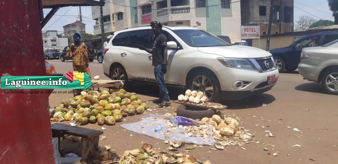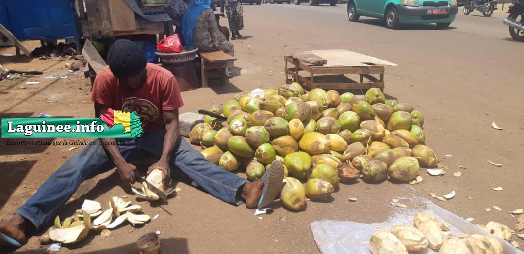 L’endroit où s’est rendu notre reporter se trouve quelque part sur la route reliant le carrefour « centre émetteur » de Kipé au rond-point de Bambeto. Sur place, les besoins des clients diffèrent. Certains veulent la noix de coco tout entière et d’autres s’intéressent uniquement à l’eau qu’elle contient.