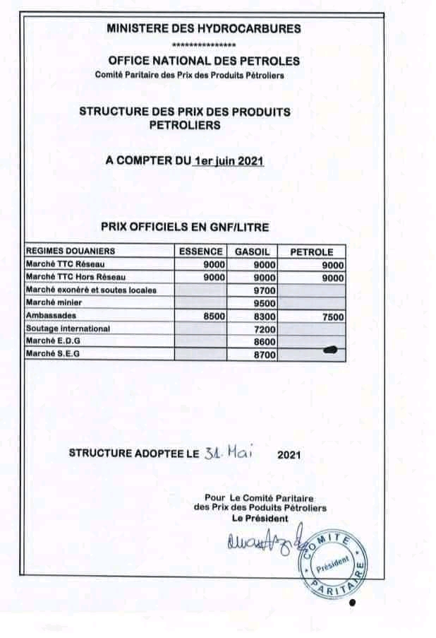 Laguinee.info vous propose ci-dessous cette note relative au prix du litre de carburant en Guinée
