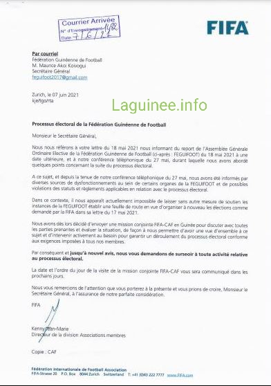 Laguinee.info vous propose ci-dessous ce courrier de la FIFA