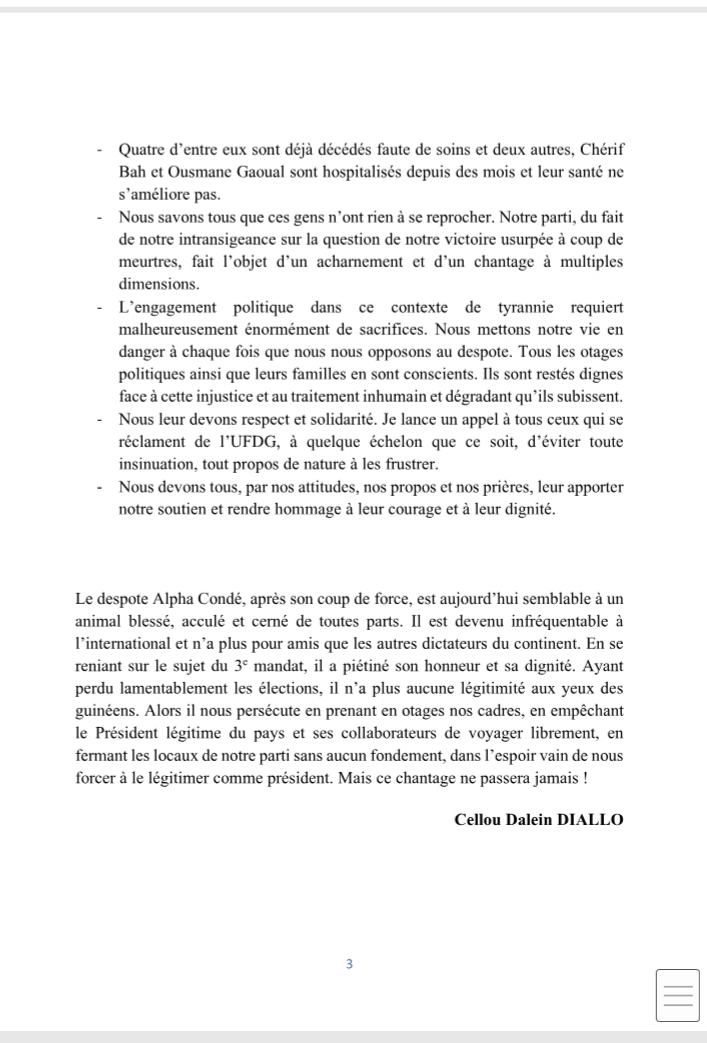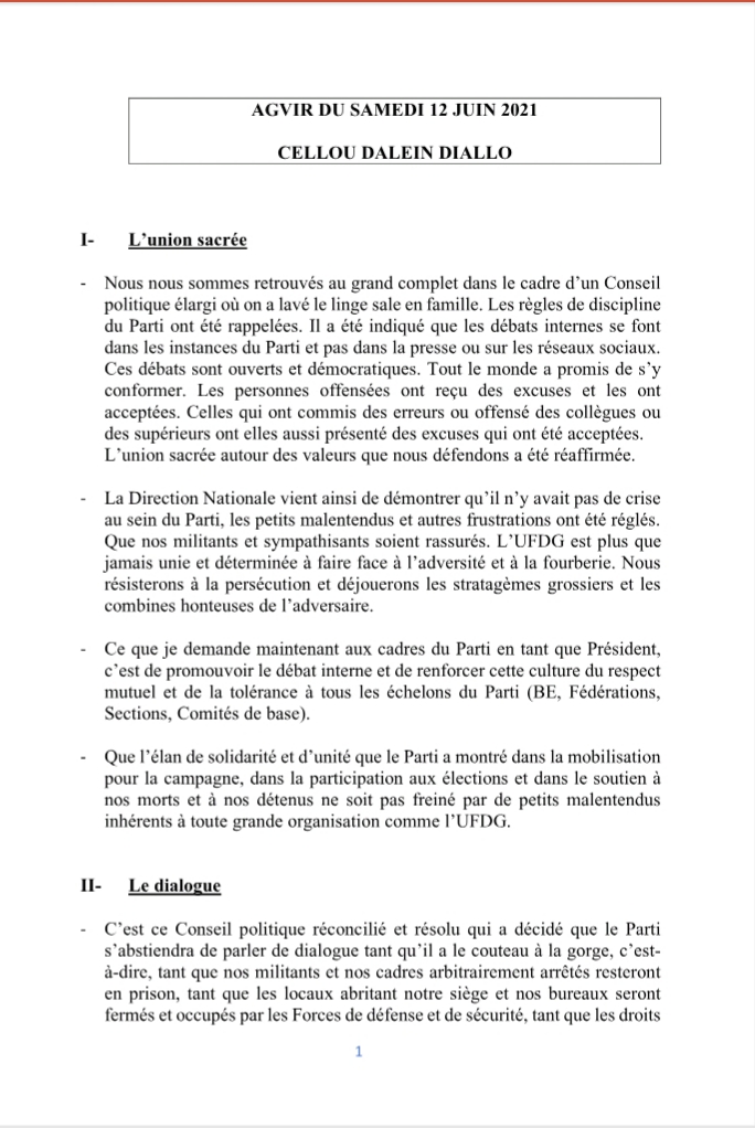 Laguinee.info vous propose ci-dessous l’intégralité du discours du président de l’UFDG à l’occasion de la 8ème Assemblée Générale Virtuelle du parti :