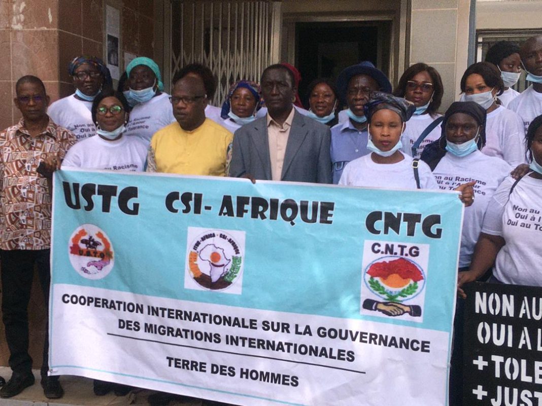 Comment permettre à la Guinée de renforcer sa capacité d’aide dans la gestion humaine des migrations pour être en conformité avec les mesures nécessaires, aux respects des conventions africaines et mondiales conformément au programme de développement durable 2030, pour faciliter une migration sûre et régulière, telles sont les préoccupations de la plate-forme Guinéenne des migrants, à travers son inter-central CNTG-USTG. Pour résoudre ladite problématique, elle a déposé ce samedi, 19 juin 2021, un mémo au ministère de l’Unité Nationale et de la Citoyenneté, a constaté Laguinee.info à travers une de ses journalistes.