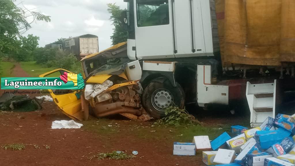 Un accident mortel s’est produit dans la nuit du vendredi à samedi, 03 juillet 2021 dans le district de Diankana relevant de la sous-préfecture de Karifamorya, préfecture de Kankan. Le bilan fait état d’un mort et quatre blessés. C’est un camion remorque immatriculé RC-1296-V en provenance de Bamako qui a percuté un minibus en partance pour Siguiri rapporte la correspondante de Laguinee.info basée à Kankan.