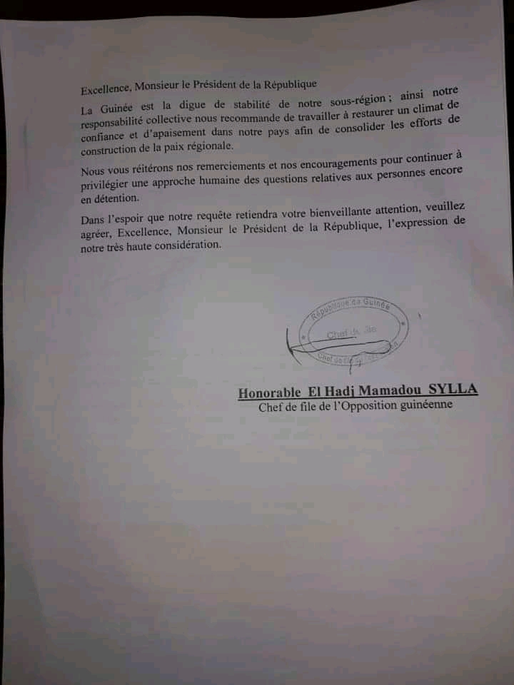 Mamadou Sylla écrit au chef de l’Etat guinéen: « Nous notons avec satisfaction les…»