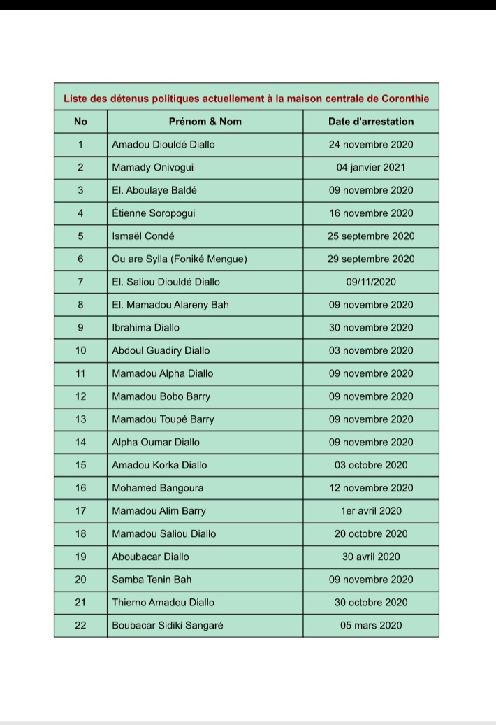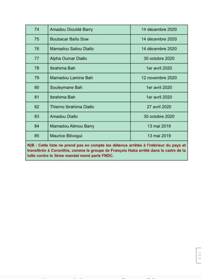 Il faut rappeler que cette liste de 85 personnes ne prend pas en compte les détenus arrêtés à l’intérieur du pays dans le cadre de la lutte contre le troisième mandat menée par le Front National pour la Défense de la Constitution (FNDC) et transférés à la Maison Centrale de Coronthie.