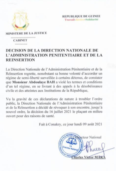 Laguinee.info vous propose ci-dessous l’intégralité des justifications de la direction nationale de l’administration pénitentiaire