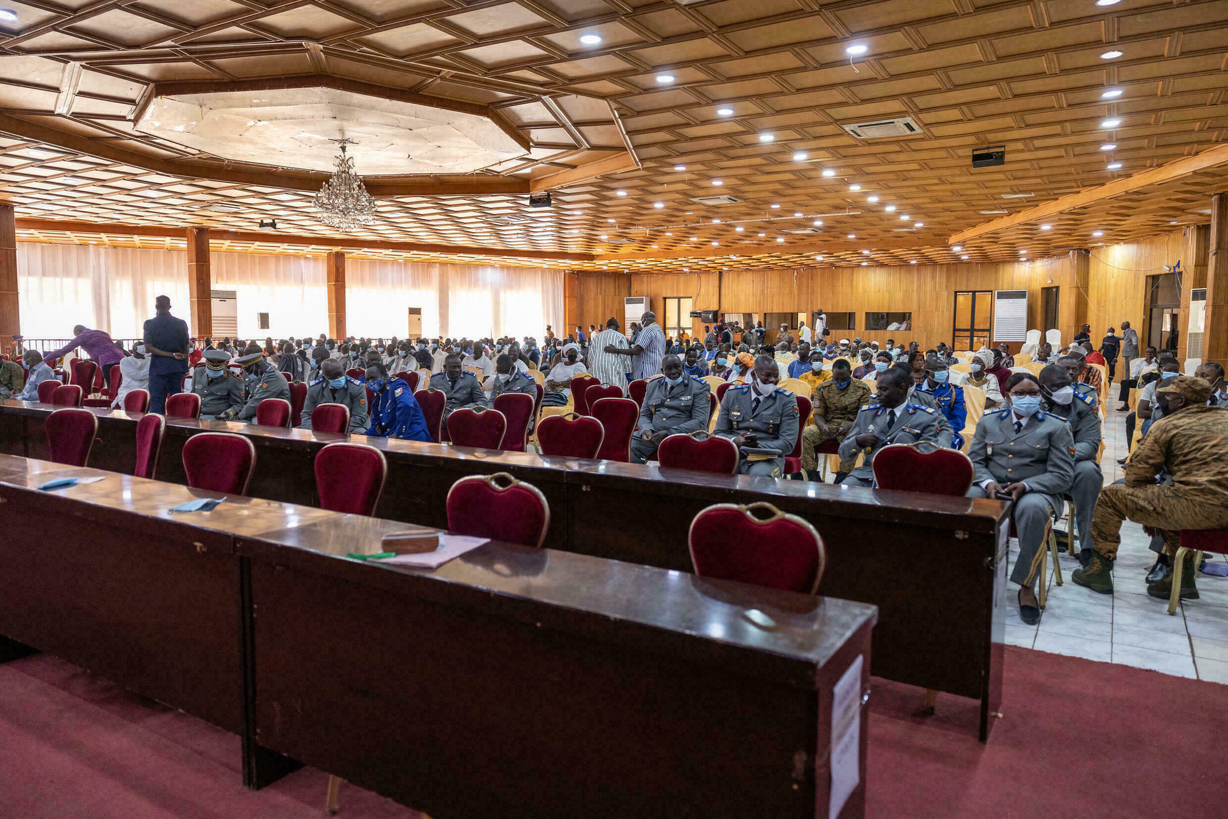 Cette première journée d’audience a été consacrée en grande partie au règlement de questions formelles et de procédures. Un grand dispositif sécuritaire était déployé tout au long du périmètre de la salle d’audience. Des avocats ont été commis d’office pour les accusés en vue d’assurer leur défense.