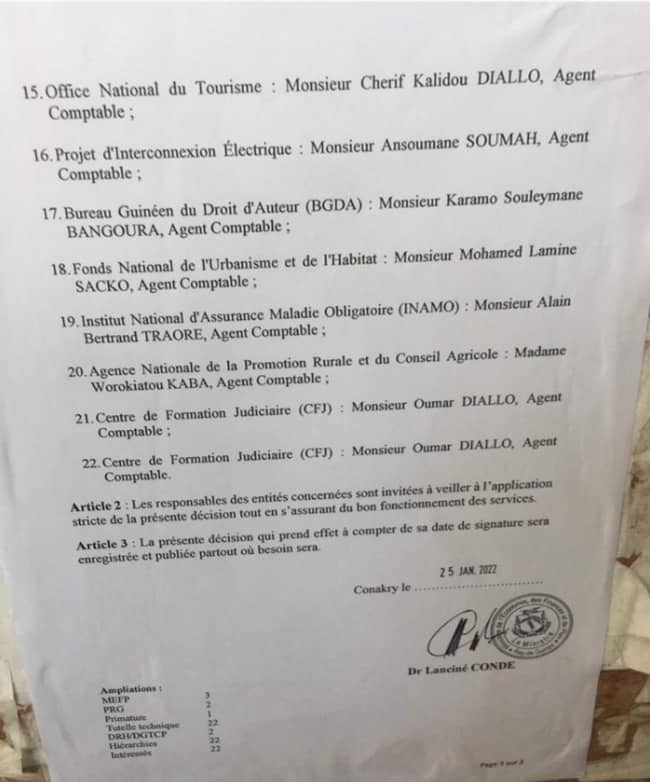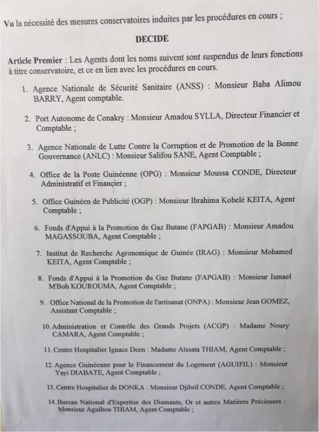 Laguinee.info vous propose ci-dessous la copie de cette décision et les noms de ces comptables suspendus