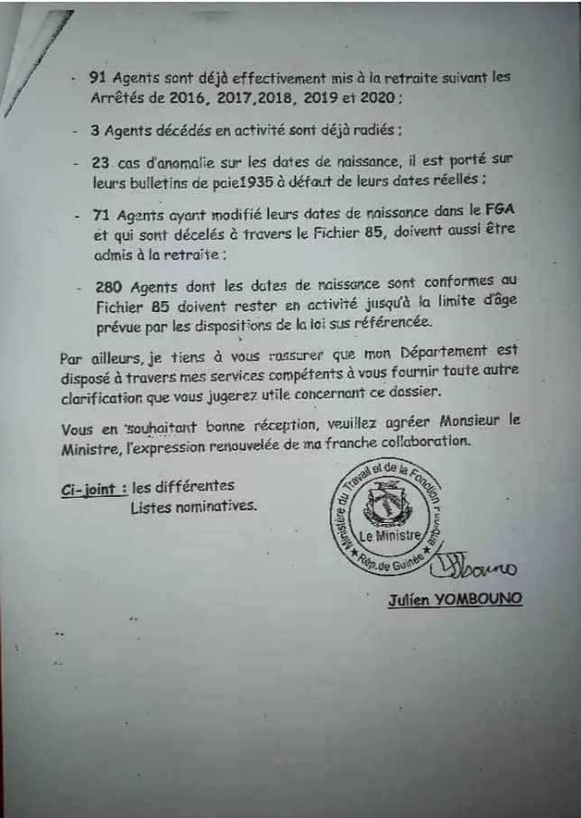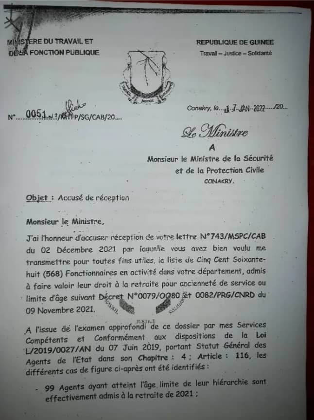 Dans une note en date du 07 janvier dernier dont Laguinee.info détient copie, le ministre du Travail et de la Fonction publique, après avoir fait des enquêtes, a rétabli 280 policiers dans leurs droits.