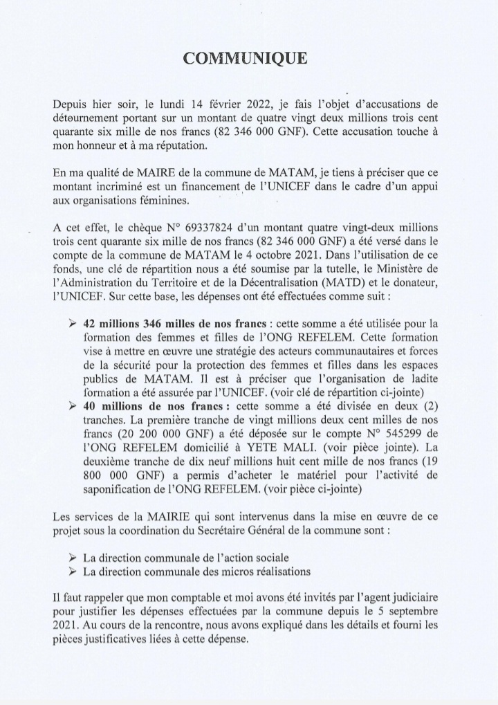 Laguinee.info vous propose ci-dessous la copie de ce communiqué