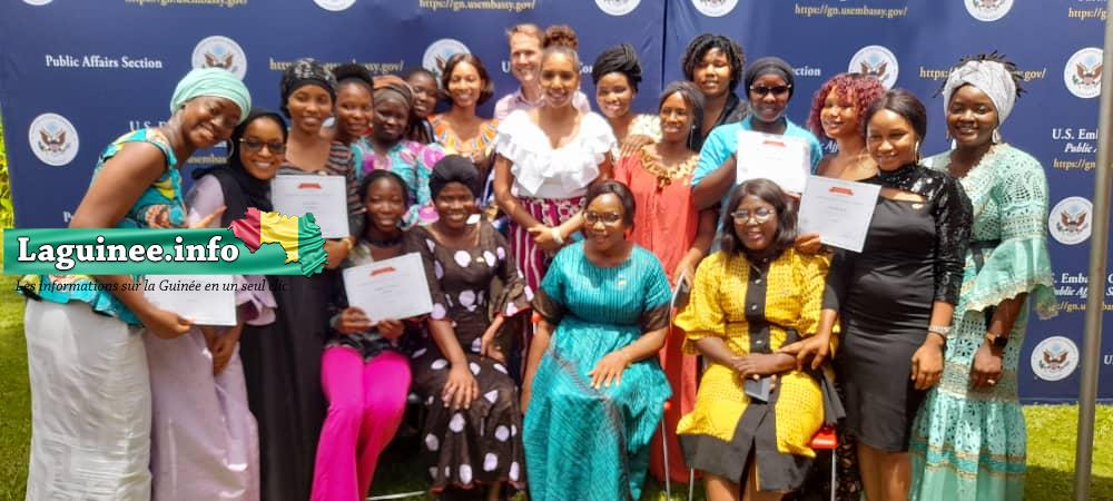 À l’occasion du sommet des femmes leaders guinéennes, l’Ambassade des États-Unis en Guinée a organisé des séances de formation intitulées » She-builds » pour plusieurs femmes leaders venant des différentes Organisations non gouvernementales (ONG) et des partis politiques. Ces renforcements de capacités portaient sur des thèmes comme l’entrepreneuriat, le leadership féminin et la communication. La formation a été clôturée hier vendredi 18 mars 2022 à la résidence privée de l’ambassadeur, rapporte un journaliste de Laguinee.info qui était sur place.