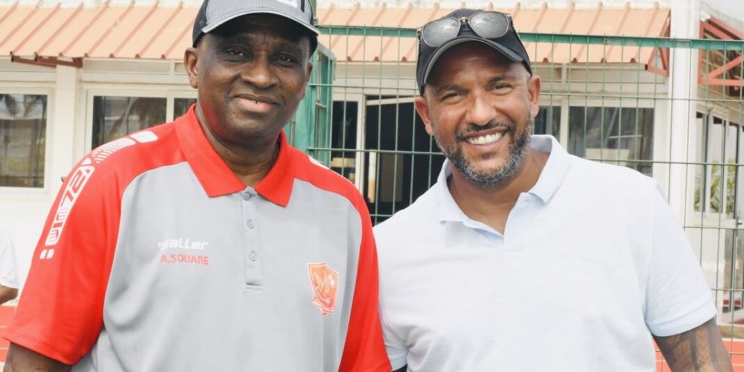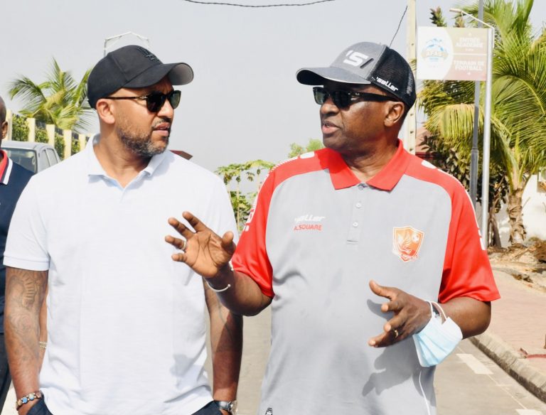 Olivier Dacourt conduit par le Président Antonio Souaré et son conseiller Abdoul Karim Bangoura « AKB », a visité les installations de la première académie de football en Guinée, avant de découvrir le somptueux hôtel Souaré Club construit dans la même enceinte.
