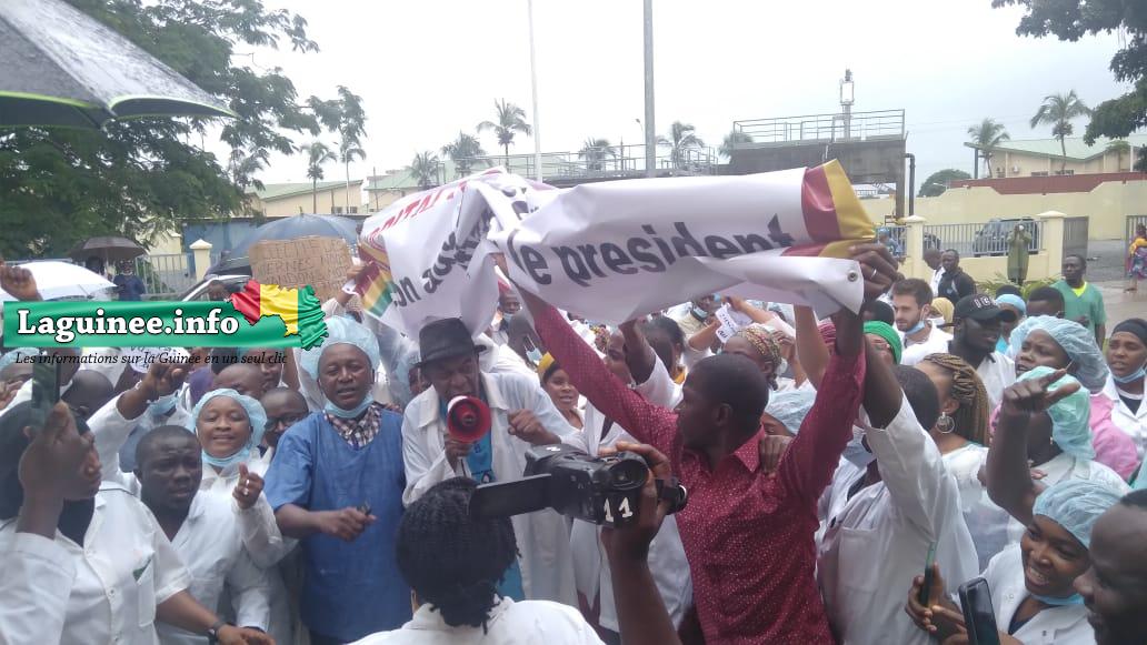 Vent debout contre la « privatisation » de l’hôpital Donka, un collectif de médecins a organisé une manifestation dans la matinée de ce mercredi, 13 juillet 2022 au sein de cet établissement hospitalier. Ces médecins dénoncent » les mensonges du ministre de la Santé et de l’hygiène publique » dont ils réclament désormais le départ du Gouvernement, a appris Laguinee.info à travers un de ses journalistes.