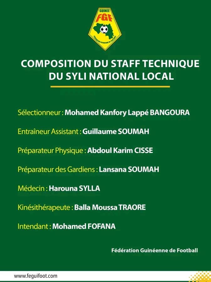 A travers une note publiée sur sa page Facebook dont Laguinee.info détient copie, le Comité de Normalisation de la Feguifoot a nommé Mohamed Kanfory Lappé Bangoura comme sélectionneur du Syli national local. Dans la même lancée, le CONOR a livré la composition du staff technique du Syli national local.