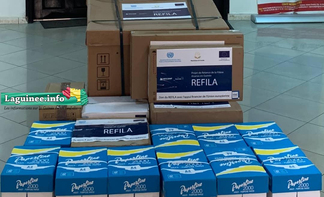 A l’occasion de ce lancement, le projet REFILA a également fait un important don d’équipements informatiques à l’IGNM pour l’élaboration des normes sur l’ananas et les produits dérivés. Ces équipements sont composés d’un ordinateur portable, d’un ordinateur bureautique, d’un photocopieur, d’un onduleur, de deux disques durs externes, d’un stabilisateur, de dix cartons de papier ram, d’un flybox, entre autres.
