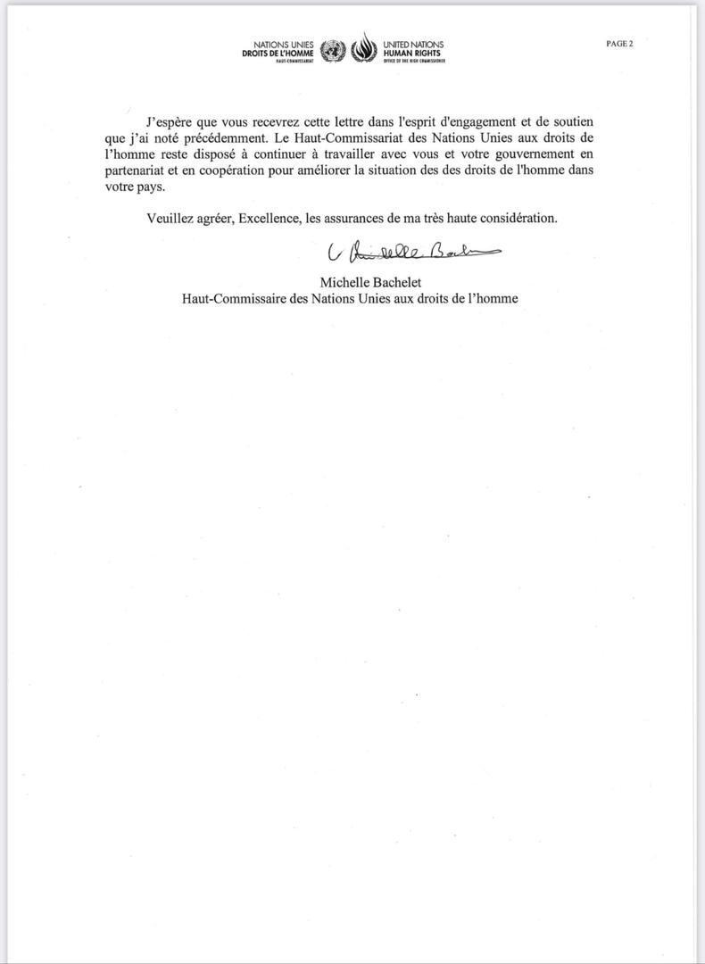 En outre, dans la lettre, la Commissaire Michelle Bachelet a également demandé au Gouvernement guinéen de revenir sur sa décision de dissolution du FNDC car, pour elle, « une telle mesure constitue une atteinte grave au droit à la liberté d’association et de réunion pacifique ».
