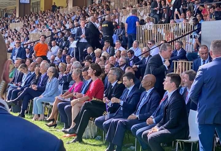 À son arrivée à l’hippodrome ParisLongchamp, le Président de l’UFDG a été accueilli par le Président du MEDEF, M. Geoffroy Roux de Bézieux, qui l’a installé à l’emplacement réservé aux hôtes de marque tels que les Ministres et Premiers Ministres invités à la cérémonie.