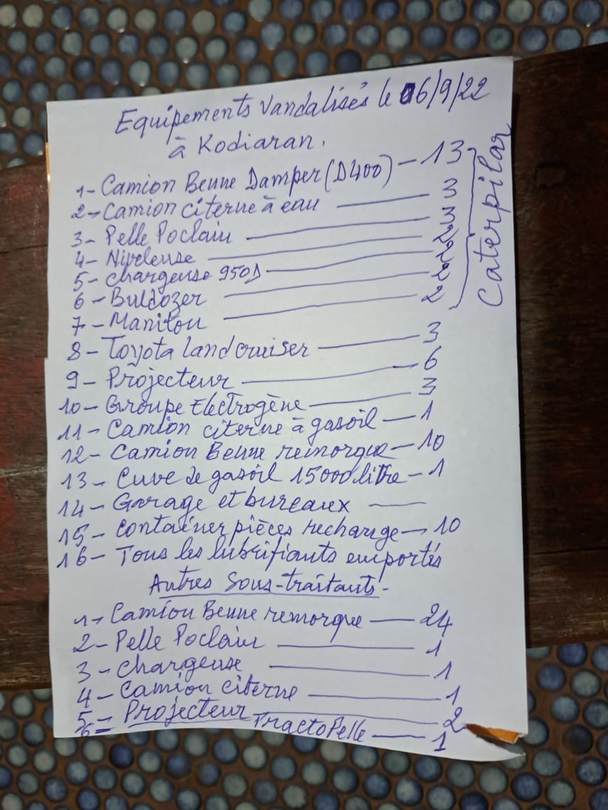 Vandalisme à la Société des Mines de Mandiana : plusieurs équipements incendiés (liste)