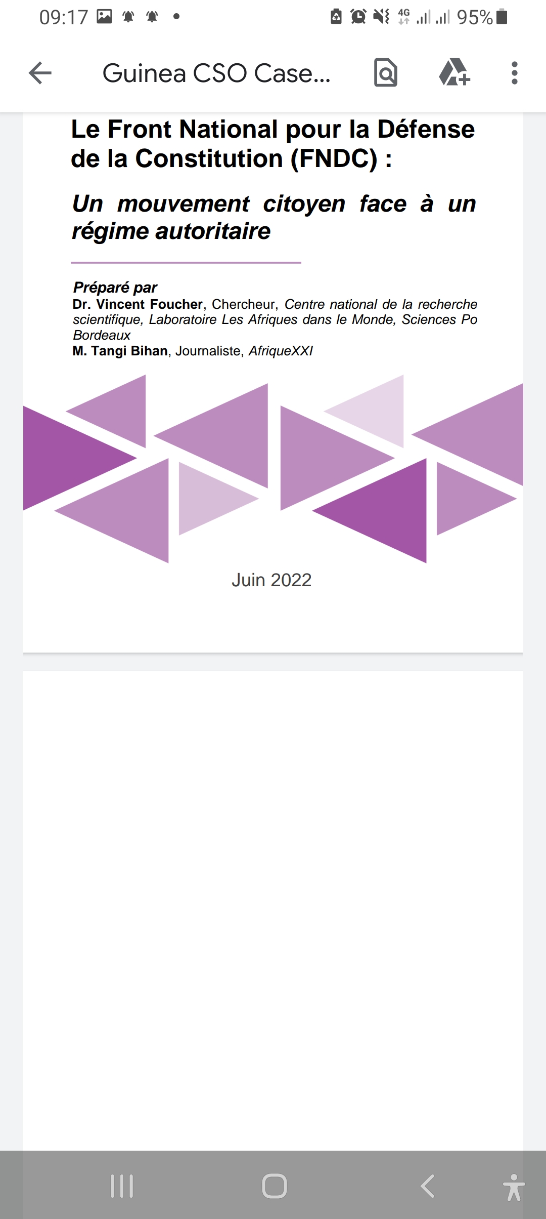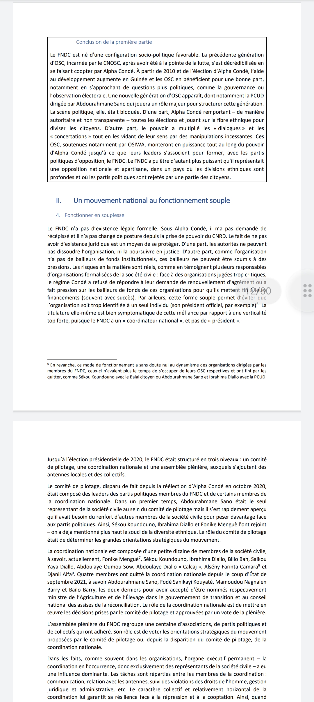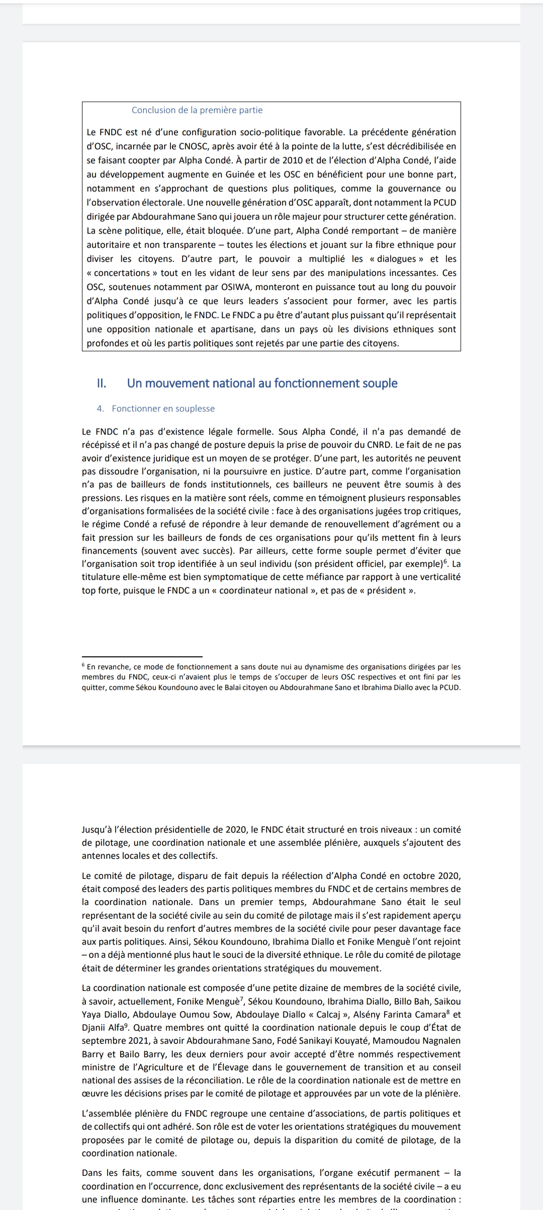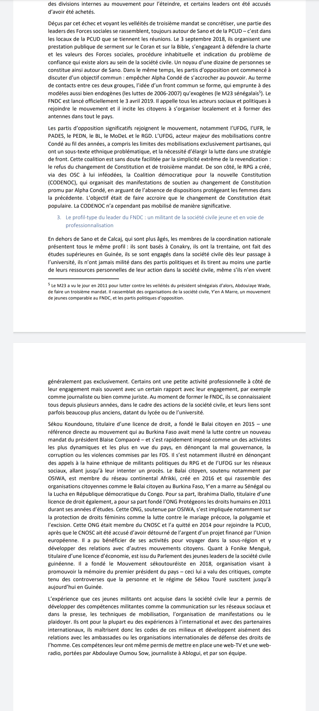 L’étude de cas parle notamment du combat démocratique et citoyen du mouvement anti troisième mandat, mais aussi de son combat actuel contre la junte militaire (le CNRD) qui voudrait imposer à la Guinée une Transition longue.