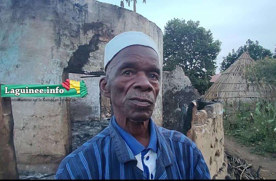 « C’est le jeudi surpassé, c’est à dire le 27 octobre, alors que nous étions à la mosquée pour la prière de 20 heures, lorsqu’on a entendu les cris aux secours. Nous sommes immédiatement venus en trouvant que c’est une case qui a pris feu et malheureusement tout son contenu était parti en fumée. Quelques temps après, une autre case a pris feu chez une autre femme  dénommée Néné Kadiatou, on est parti là-bas aussi en trouvant que le feu a fini de consumer toute la case et son contenu et toute sa récolte a été réduite en cendre. Quand nous avons fini d’éteindre le feu, la case de la coépouse de cette dernière aussi a pris feu. Dans cette soirée en tout, ce sont trois (3) cases qui avaient été consumées. Le lendemain encore ça a repris, une case a pris feu quand nous sommes allés pour éteindre le feu, on nous a alerté chez les voisins aussi pour un autre incendie. Et six (6) jours après, ma propre case a pris feu et c’était la plus grande case. Le lendemain, une autre de mes  cases a été brûlée par ce feu encore. Donc, c’est comme ça que ça s’est passé jusqu’à ce qu’on a eu en tout 13 cases consumées », a-t-il expliqué.
