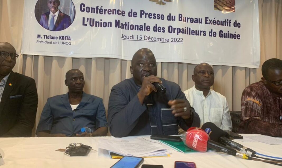 Le bureau exécutif de l’Union Nationale des Orpailleurs de Guinée (UNOG) et plusieurs de ses membres étaient face à la presse ce jeudi 15 décembre 2022 à Conakry. Objectif, réitérer leur soutien indéfectible au président du bureau Tidiane Koïta et rassurer leurs partenaires d’affaires dans le secteur, rapporte un journaliste que Laguinee.info a dépêché sur place.