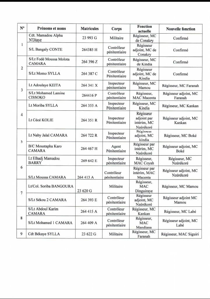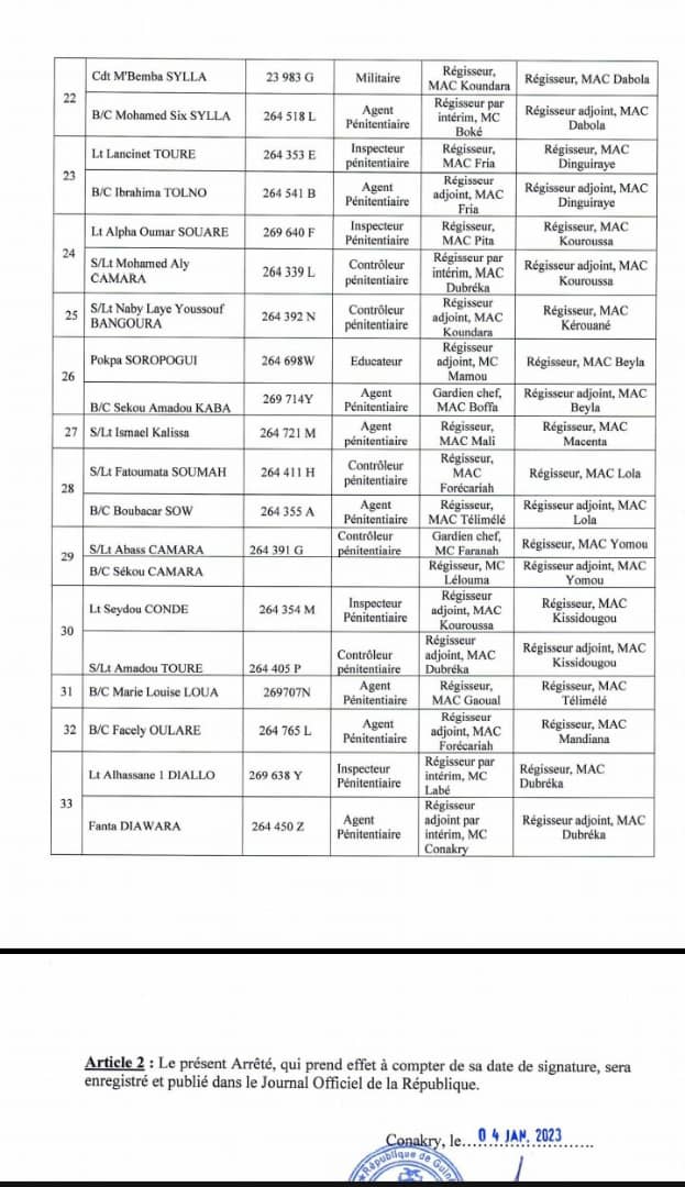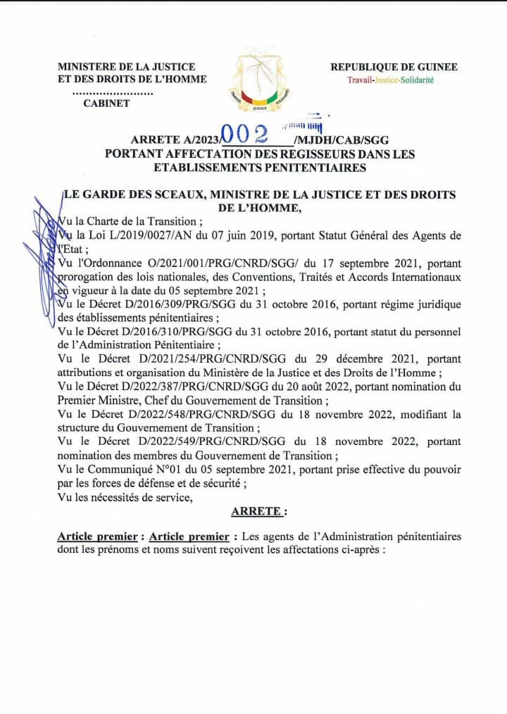 Laguinee.info vous propose ci-dessous l’intégralité dudit arrêté portant sur l’affectation des régisseurs de prison
