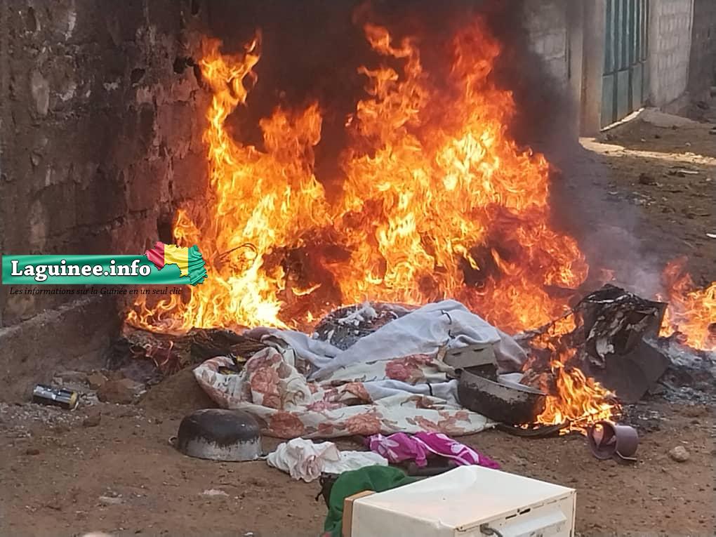 Des jeunes en colère se sont attaqués à l’immeuble dans laquel le corps du petit Hassimiou a été retrouvé. Les vitres du bâtiment ont été vandalisées et plusieurs objets ont été incendiés par la foule, a constaté sur place Laguinee.info à travers un de ses reporters.