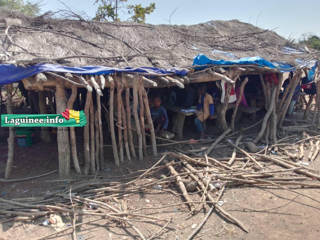 École paillote à Fourankan, un secteur relevant du district de Birissa situé à 26 kilomètres de la ville de Faranah