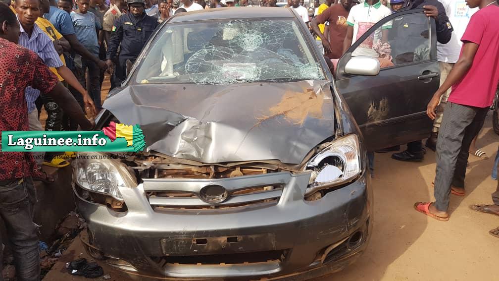 Alhassane Camara témoin des faits revient sur les circonstances de l’accident. « C’est juste après la prière de 16 heures que cet accident s’est produit. Deux véhicules se suivaient mais le premier qui est un taxi a ralenti pour que les deux filles passent, elles étaient sur cette position, sans savoir que le second véhicule venait mais à vive allure d’après les autres, qui a percuté les deux jeunes filles qui ont rendu l’âme sur le champ. C’est des jeunes lycéens de l’établissement Bah Khane qui ne peuvent même pas avoir 22 ans selon la physionomie, qui étaient à bord du véhicule impliqué dans l’accident », explique-t-il.
