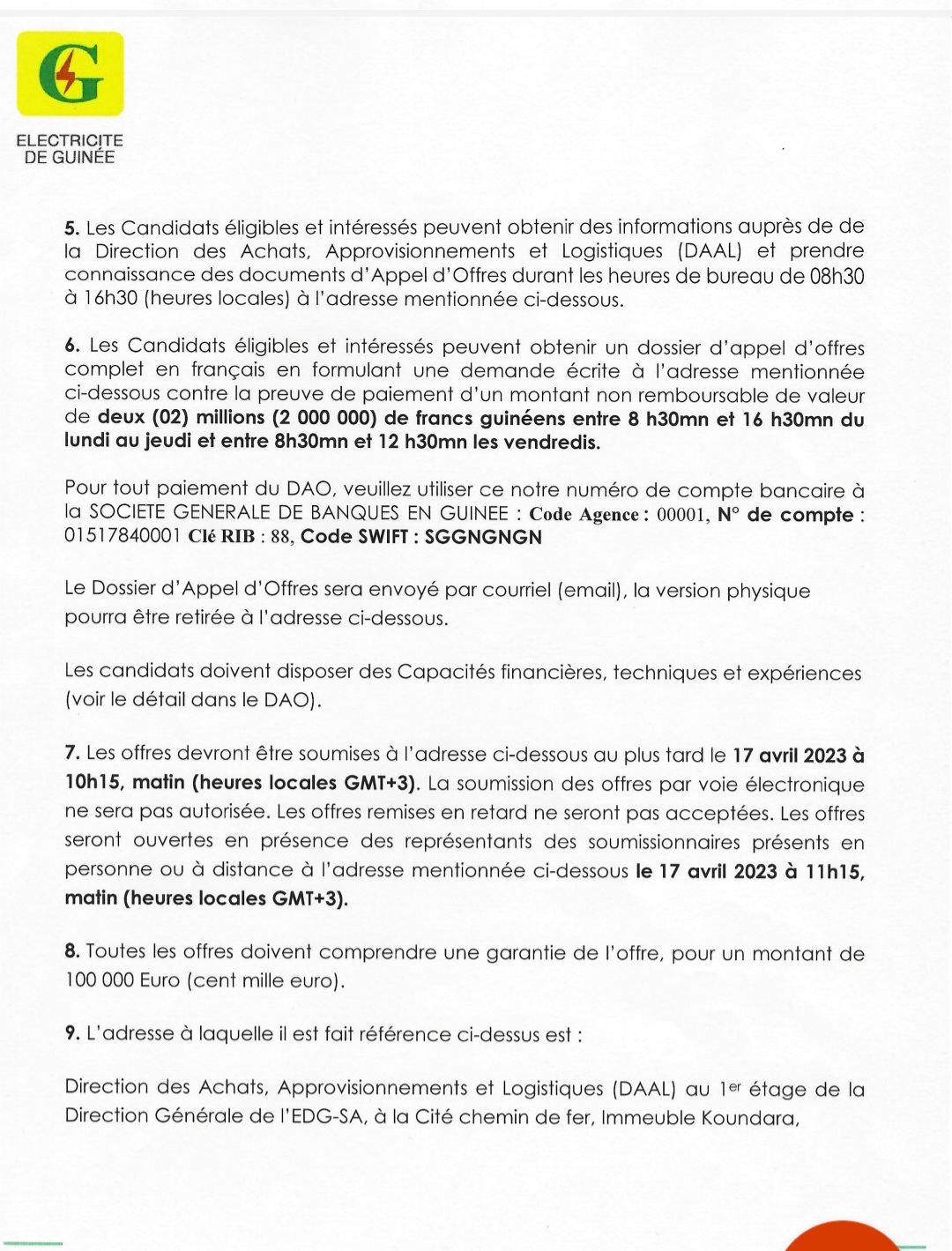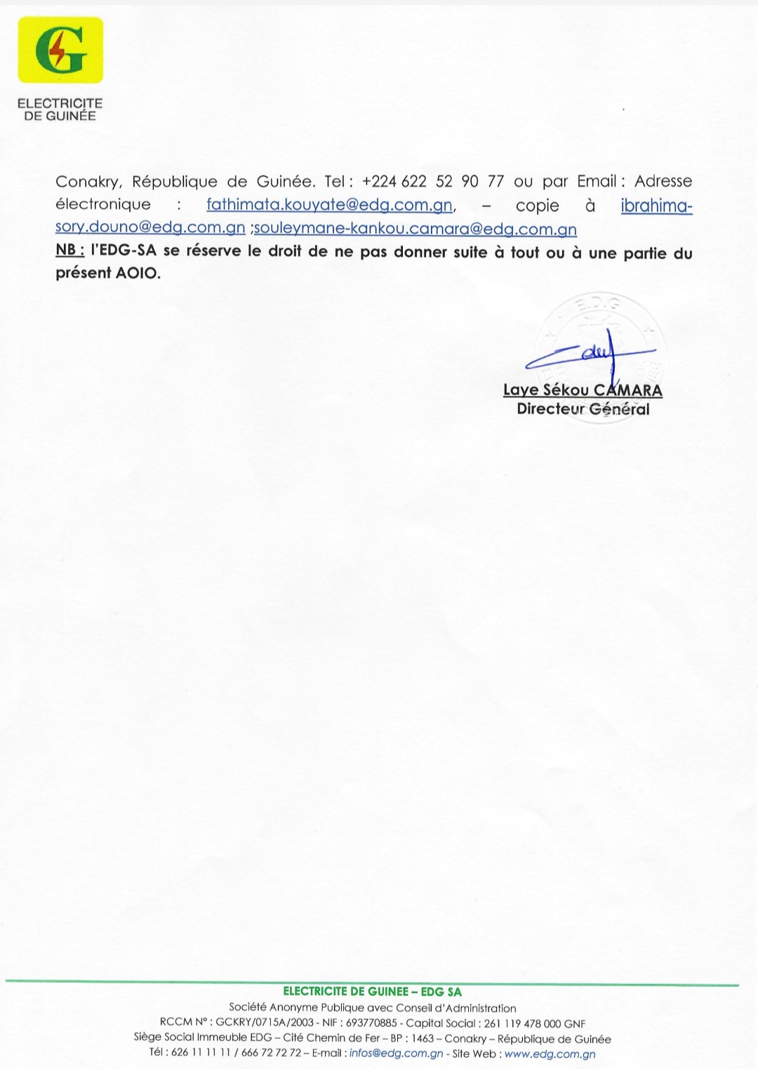 Laguinee.info vous propose ci-dessous la copie de cet avis