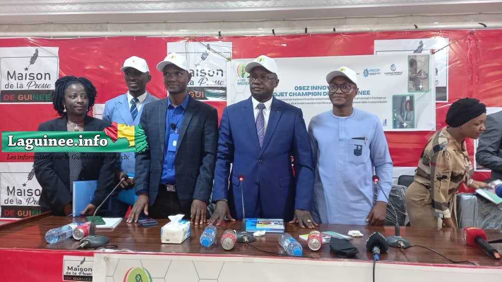 Des responsables de l’ONG Osez Innover, en marge d’une conférence de presse à Conakry