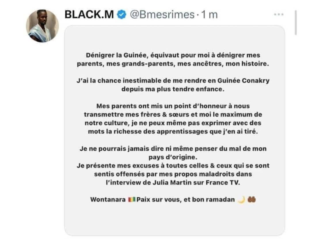 Après sa sortie dans une interview accordée à France TV, l’artiste Franco-guinéen Black M a soutenu que la misère de la Guinée s’explique par le fait qu’elle n’est pas dans la zone franc CFA.