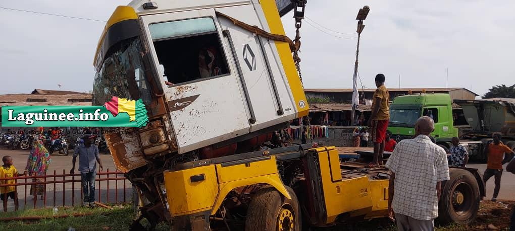 Dans la nuit du mardi à ce mercredi 26 avril 2023, un camion dont le conducteur a perdu le contrôle à cause de la défaillance du système de freinage, a fini sa course au milieu du rond-point de Matoto, détruisant ainsi une bonne partie des installations dudit rond-point, a constaté Laguinee.info à travers un de ses reporters.