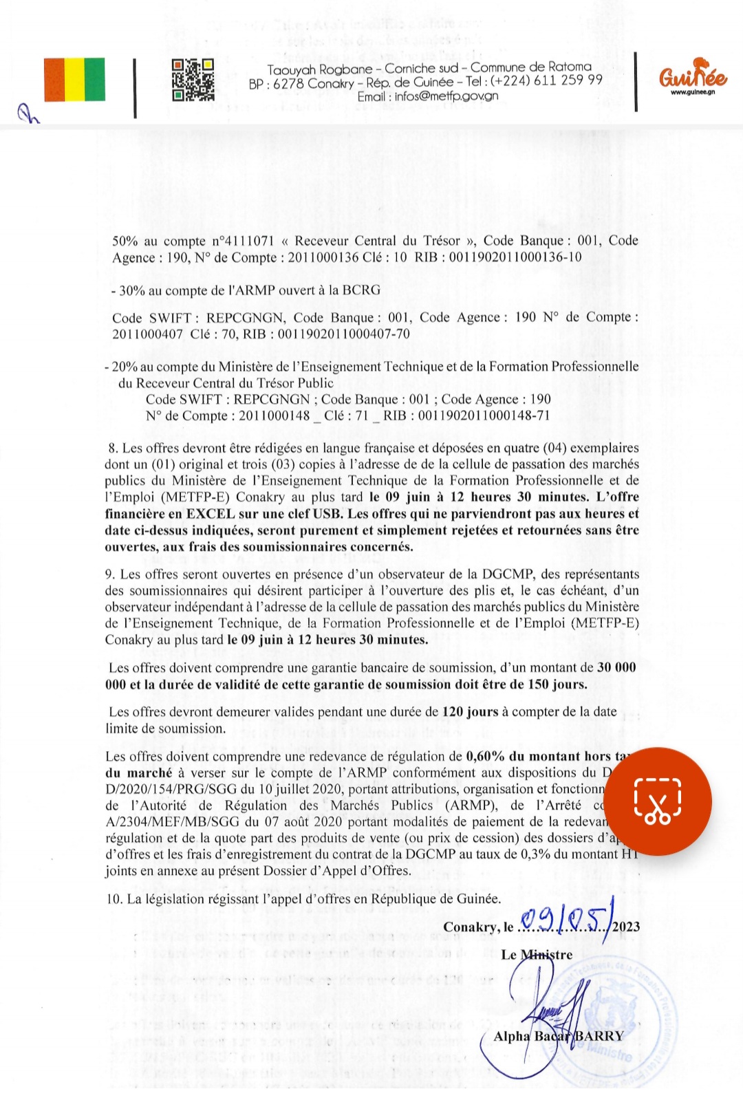 Laguinee.info vous propose ci-dessous copie de avis d’appel d’offres (AAO) pour l’exécution des travaux de rénovation de l’ENSAC