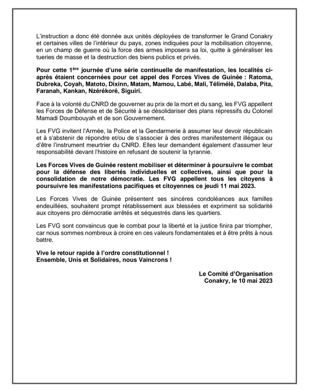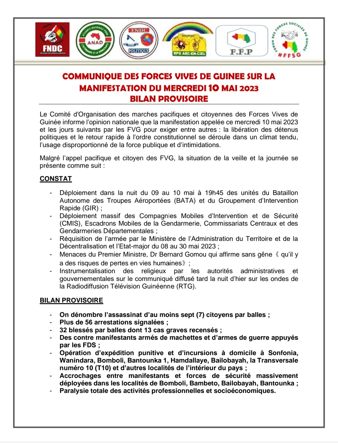 Laguinee.info vous propose ci-dessous, copie du communiqué :