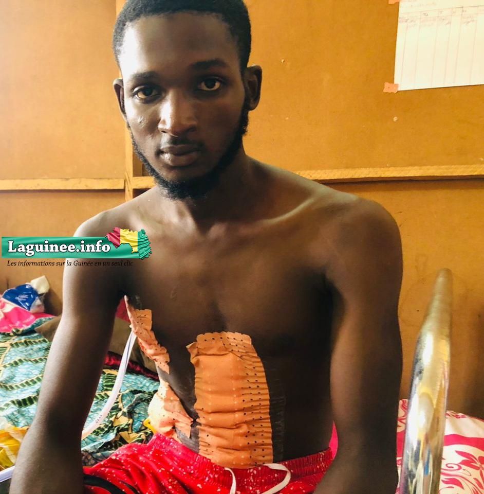 Selon les explications de la victime, il était parti chercher à manger au carrefour Cosa avec ses amis. « J’ai décidé de rentrer à la maison, j’étais tout près; mais, ma moto ne s’allumait pas et c’est de là qu’un monsieur est venu me trouver en me disant que c’est nous les bandits, pourtant moi je ne savais même pas qu’il y avait manifestation. Il s’est jeté sur moi après, il a tiré sur mes pneus. Quand j’ai vu qu’il avait une arme, j’ai décidé de m’enfuir avec la moto vers les rails, il a tiré deux balles sur moi. Une au niveau de mes reins et l’autre au niveau de ma manche qui a atteint mes poumons. J’ai abandonné la moto et forcé la situation pour courir afin de dire à mes amis que j’ai été touché par balles vu que je n’étais pas loin du carrefour. Une fois arrivé, je leur ai dit que j’ai été touché par balles. Et à cause de la douleur, j’ai perdu connaissance », a relaté Mamadou Kindy Bah.