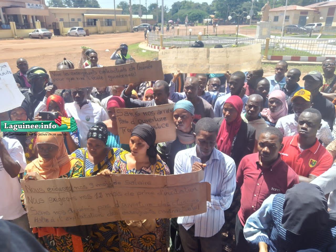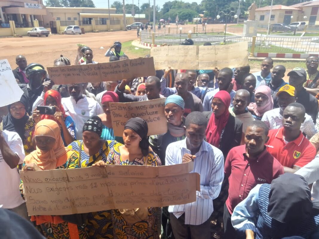 Les enseignants contractuels de Labé ont tenu un sit-in dans la matinée de ce lundi 18 septembre 2023, devant l’inspection régionale de l’éducation. Ils exigent le payement de leurs arriérés de salaires et de leur intégration à la fonction publique, a constaté Laguinee.info à travers sa correspondante basée sur place.