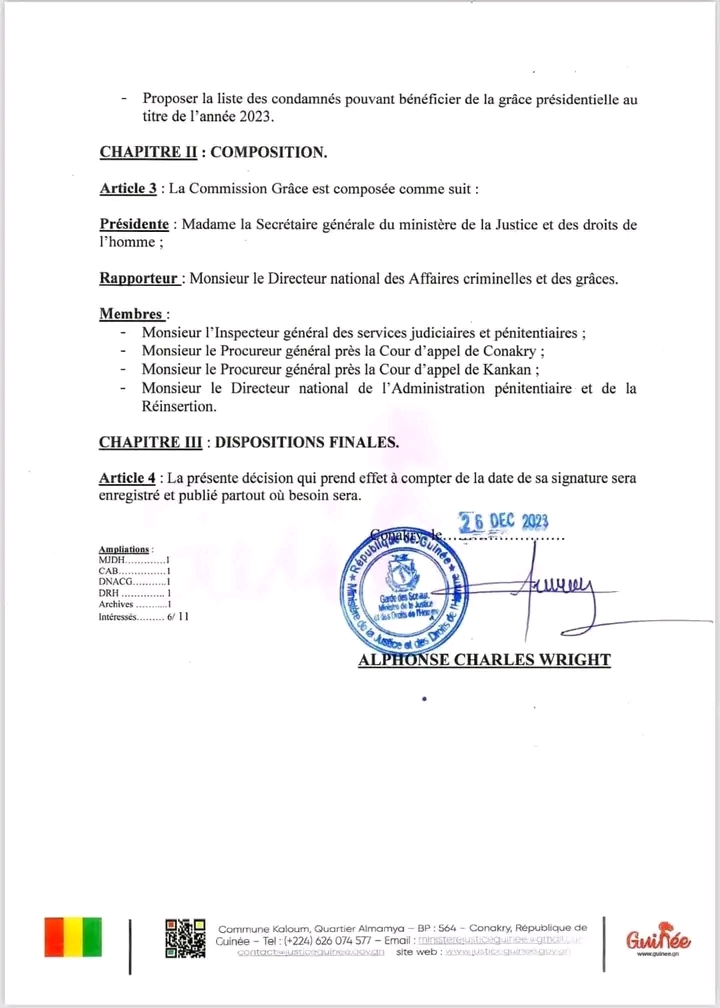 Dans une décision prise par la Ministère de la Justice et des Droits de l’Homme, Alphonse Charles Wright a annoncé la création et l’ameublement d’une commission d’examen des demandes de grâces présidentielles pour l’année 2023.