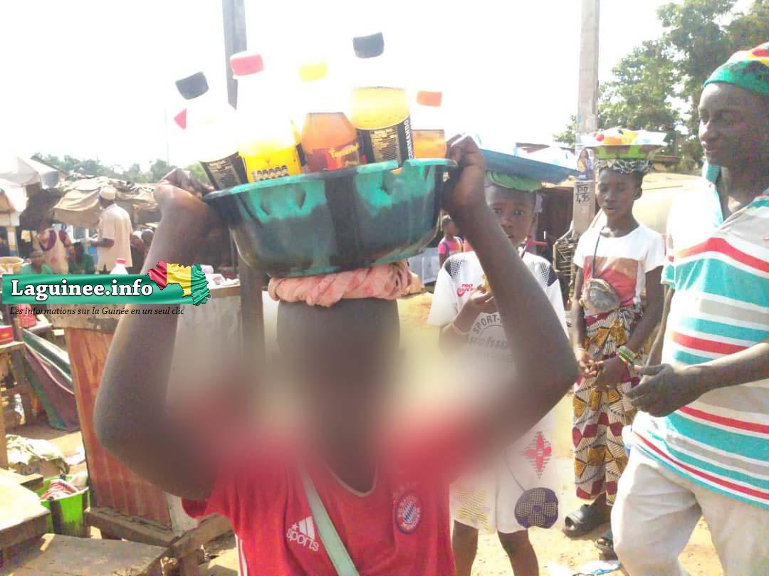 Ce lundi 22 janvier 2024 dans la matinée, une journaliste de Laguinee.info a observé de près la situation au marché central de Coyah. Entre divers commerces, des jeunes filles et des dames, des vieux et des vieilles exposent leurs marchandises, cherchant à réaliser des gains. Cependant, notre attention s’est portée sur les enfants innocents, portant des plateaux sur la tête, déambulant dans les rues pour vendre de l’eau ou du jus glacé.