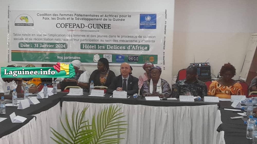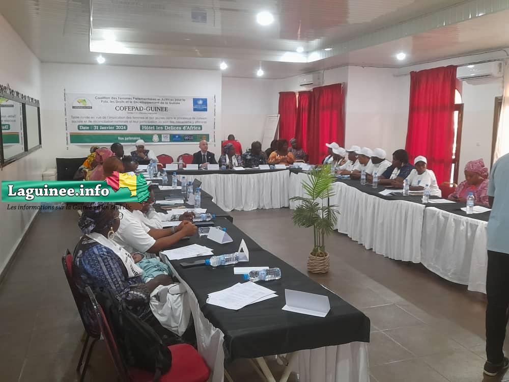 La Coalition des Femmes Parlementaires et Actrices pour la Paix, les Droits et le Développement de la Guinée (COFEPAD-GUINEE) a organisé une table ronde ce mercredi 31 janvier 2024 dans un réceptif hôtelier de la capitale Conakry. Entamé la semaine dernière, l’objectif de cet atelier était de faire un plaidoyer en vue de l’implication des femmes et des jeunes dans le processus de réconciliation nationale et leur participation au sein des mécanismes y afférents, rapporte un journaliste de Laguinee.info qui était sur place.