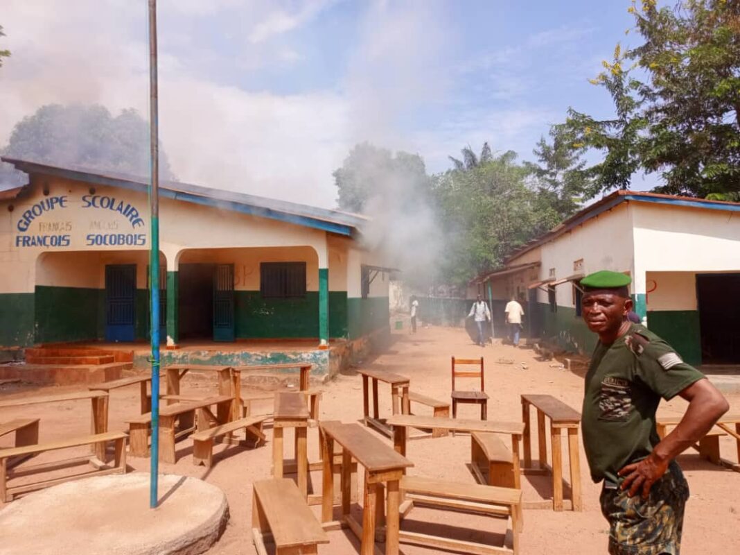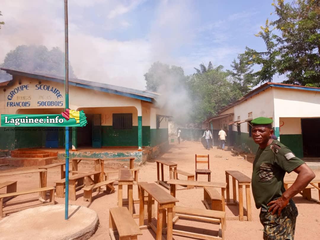 Incendie ce dimanche à Kissidougou ! Le groupe scolaire Groupe scolaire « François Socobois’’ et son contenu sont partis en fumée. Seuls quelques tables-bancs ont été épargnés. Les origines de cet incendie restent inconnues car, selon le Directeur de l’établissement, l’école n’est pas électrifiée.
