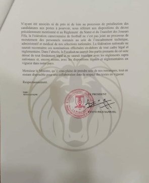 Dans une lettre de deux pages adressée au ministre des camerounais des Sports, l’ancien capitaine de l’équipe nationale du Cameroun a dénoncé avec une virulence inouïe cette décision qu’il qualifie de « hors cadre légal et réglementaire ».