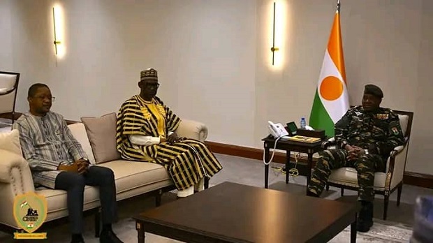 Les dirigeants de l’Alliance des États du Sahel (AES) intensifient leurs efforts pour concrétiser la confédération des pays membres de l’AES. Le Général de Brigade Abdourahamane Tiani, Président du Conseil National pour la Sauvegarde de la Patrie (CNSP) et Chef de l’État du Niger, a accueilli ce jour Abdoulaye Diop et Karamoko Jean Marie Traoré, respectivement ministres des Affaires étrangères du Mali et du Burkina Faso. Étaient également présents l’Ambassadeur du Mali au Niger, le Consul du Burkina Faso, et une importante délégation d’experts.