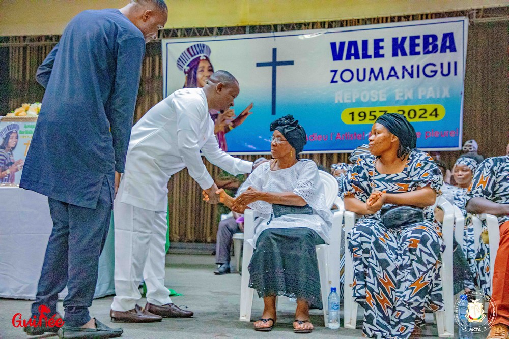 Dans son discours, la gorge nouée, le ministre de la Culture, du Tourisme et de l’Artisanat, Moussa Moise Sylla, a particulièrement reconnu et magnifié Valé Kéba comme étant une «artiste exceptionnelle, une lumière qui a illuminé le monde culturel de notre pays… une chanteuse talentueuse qui a laissé une marque indélébile dans nos cœurs et dans le paysage musical guinéen». Puis, au nom du chef de l’Etat et au nom du gouvernement, le ministre Sylla a annoncé de bonnes nouvelles qui ont amplifié le réconfort dans les cœurs en ces moments de chagrin.