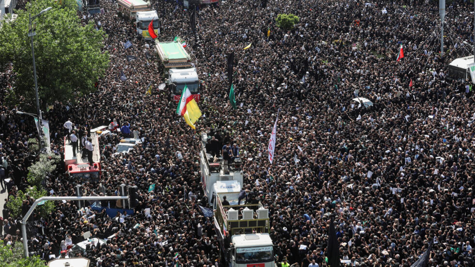 Des milliers de personnes se sont réunies à Téhéran dans la capitale iranienne pour la prière funéraire de leur défunt président. Cette prière a été prononcée par le guide suprême iranien en présence des dirigeants politiques et militaires du pays, mais aussi par des invités étrangers, notamment Ismaïl Haniyeh, le chef du bureau politique du Hamas.
