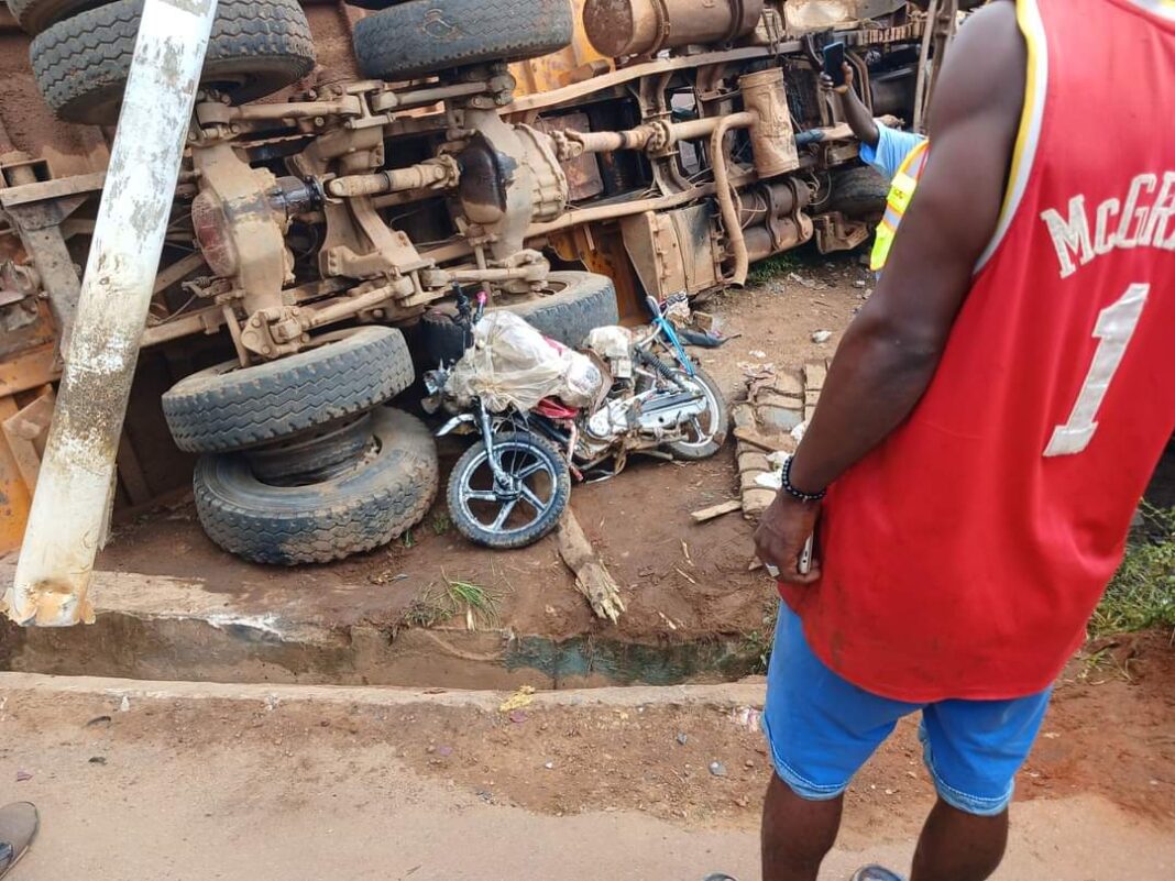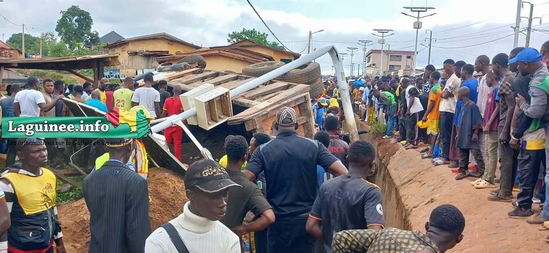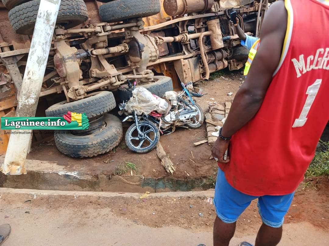 Selon des témoignages recueillis sur place, «le chauffeur du camion-benne a dévié un véhicule qui s’est introduit imprudemment devant lui. Voulant le dévié, il a perdu le contrôle de son engin. C’est ainsi qu’il a pris le sens de la route en percutant deux photos. Un poteau électrique et et le deuxième était celui du panneau d’éclairage public. En suite, il a ramassé un conducteur de taxi moto et sa passagère qui avait un bébé au dos. Sur place deux personnes ont perdu la vie dont le taximètre et l’apprenti du camion. Les autres blessés ont été transportés a l’hôpital régional de N’Zérékoré.» a décrit un témoin.