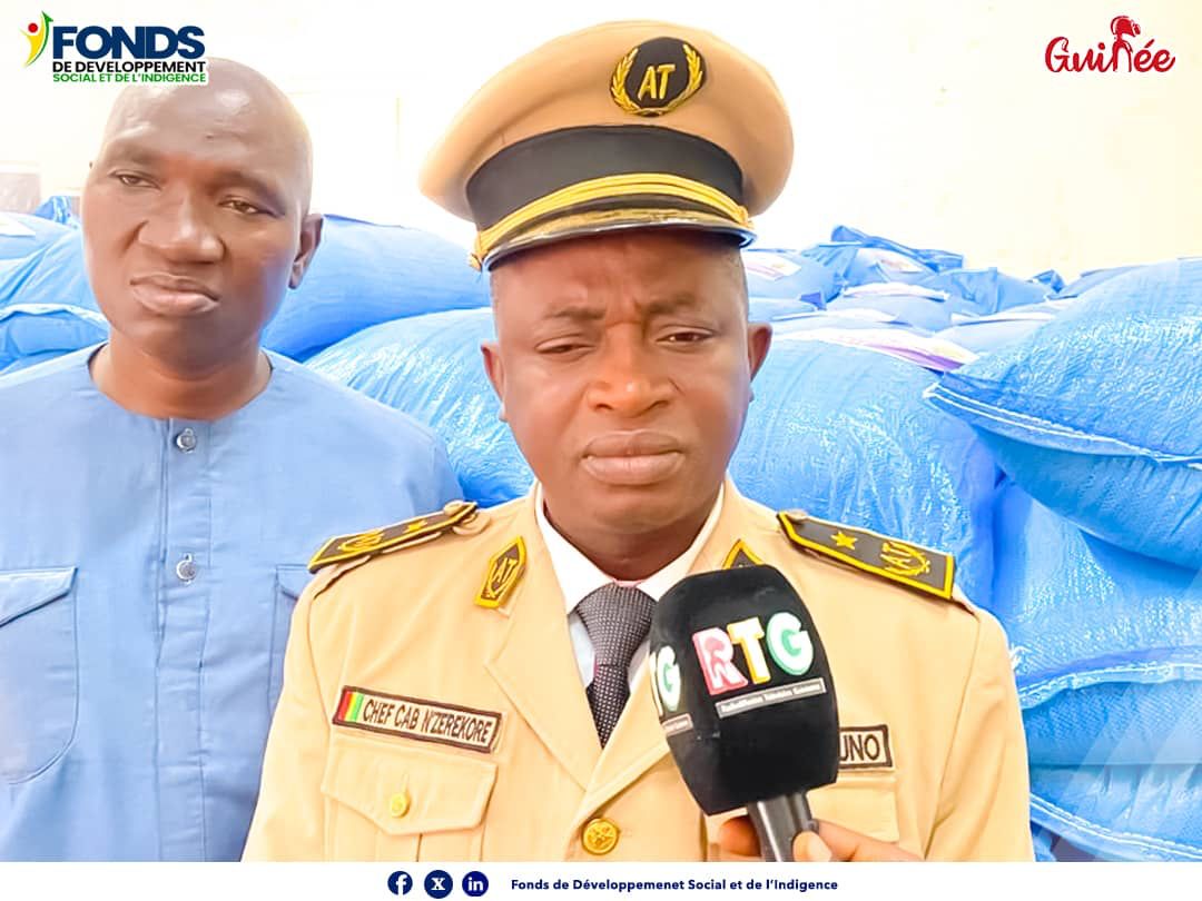 Le Chef de Cabinet du Gouvernorat de la Région administrative de N’Zérékoré, représentant de Monsieur le Gouverneur, a exprimé sa gratitude envers le Président de la république ,Chef de l’État et Chef Suprême des Armées, Général des corps armés, Mamadi Doumbouya et la Direction Générale du Fonds de Développement Social et de l’Indigence (FDSI). « Après de nombreuses activités réalisées ici, le FDSI revient une fois de plus dans notre précieuse région pour la remise officielle des récoltes des champs de riz qu’ils ont aménagés à Kpoo, sous-préfecture de Bignamou, et à Koimpa dans la sous-préfecture de Diécké, préfecture de Yomou.Cette initiative témoigne de l’engagement du Président de la Transition, Chef de l’État et Chef Suprême des Armées, Général des corps armés, Mamadi Doumbouya, envers les préoccupations des plus démunis de notre nation. Je suis fermement convaincu que la protection sociale en Guinée est désormais une réalité en république de Guinée, illustrée par les nombreuses actions entreprises par le FDSI depuis l’avènement du CNRD au pouvoir », a indiqué M. Etienne Sandouno, Chef de Cabinet du Gouvernorat de N’Zérékoré.